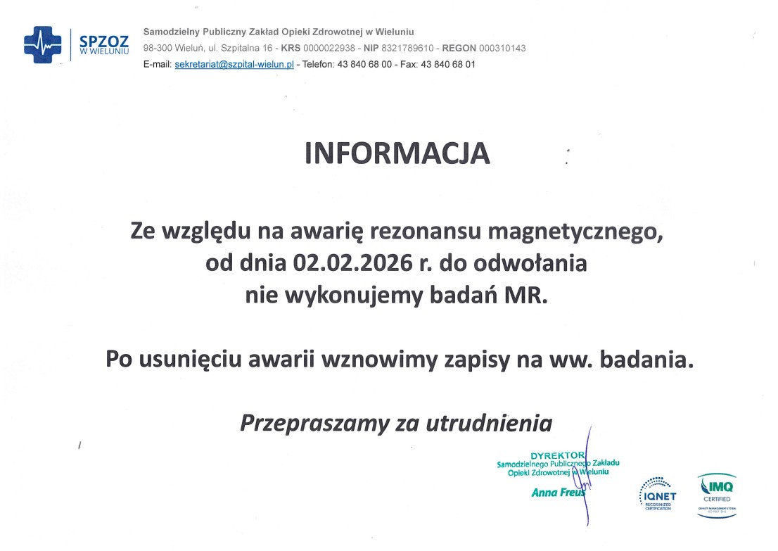 1. Administracja, Rejestracja Rejestracja Poradni Specjalistycznych, Zespół Poradni Specjalistycznych, Pracownia Rezonansu Magnetycznego